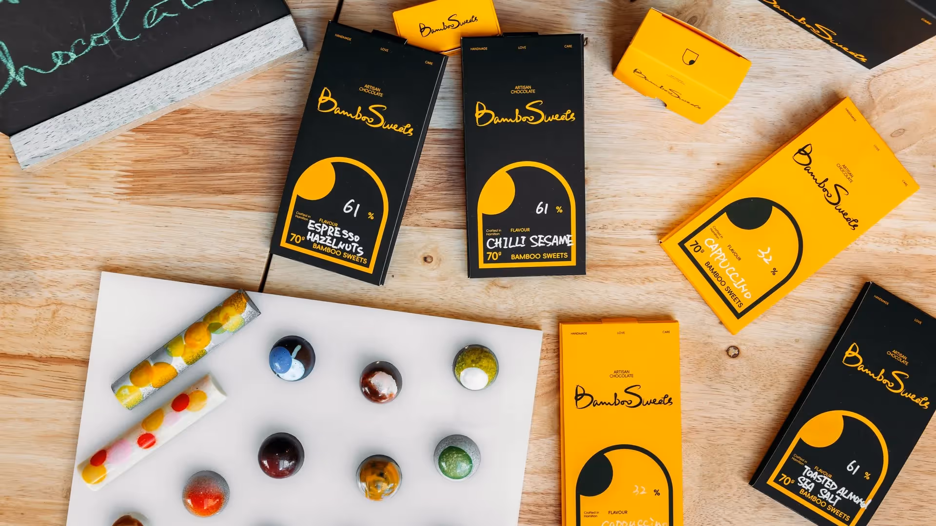 A best seller is the chilli and sesame chocolate bar, a tantalising mix of sweet, savoury and a bit of a spice. Custom orders are also available, including branded bars and corporate gifts, making it easy to share the indulgence of Bamboo Sweets with others.George and Heather are the creative minds behind Bamboo Sweets, the pair meeting while studying together at Le Cordon Bleu in Wellington.