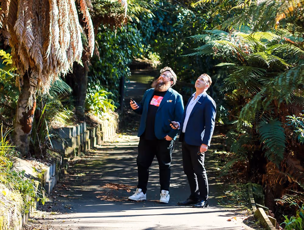 Matthew Cooper of Sport Waikato and Dr Jeremy Mayall of Creative Waikato met to experience Te Ara Toi o Te Taniwha.