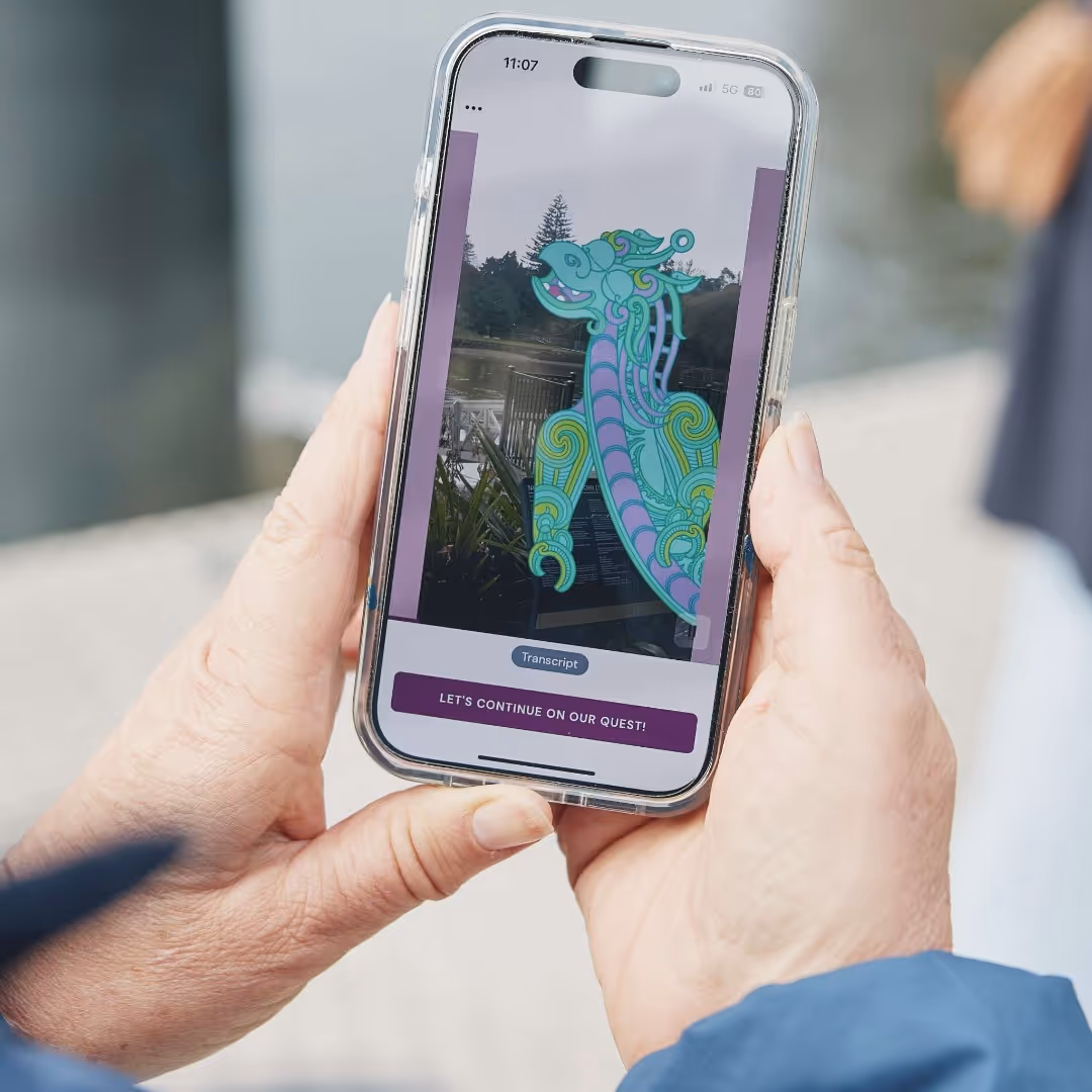 The uniting features of these activities are found in newin-app experience, Te Ara Toi o Te Taniwha, an interactive animated guided arts experience developed by Creative Waikato in partnership with PickPath.