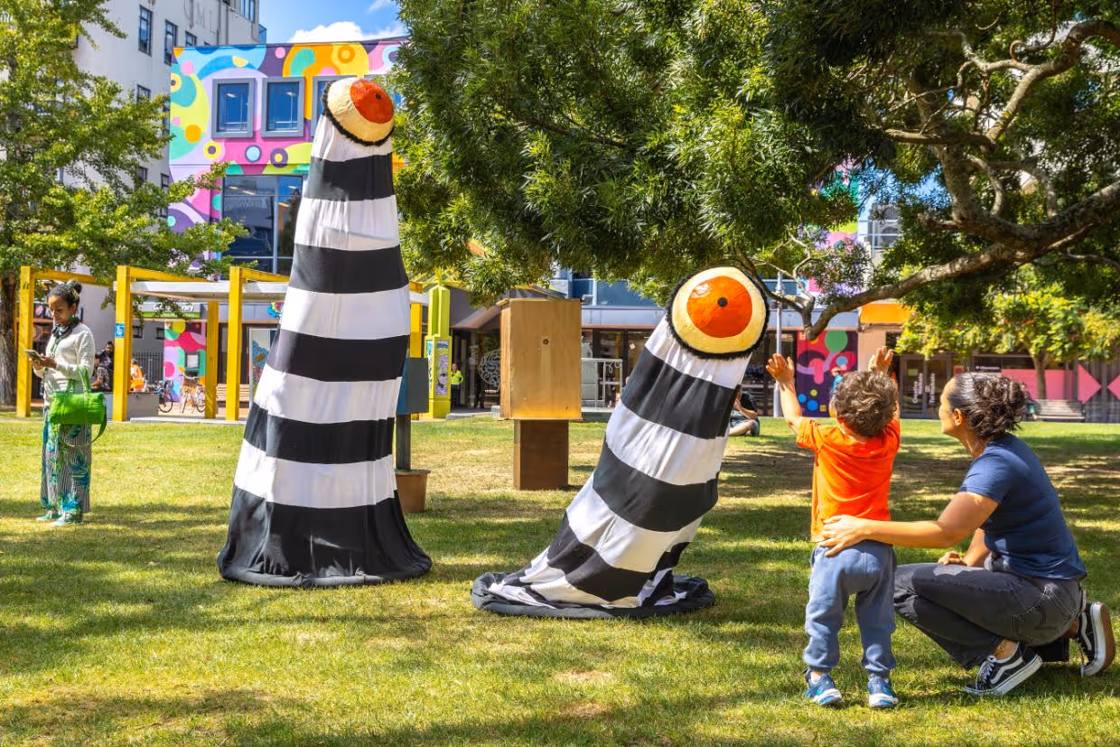 While the lunchtime crowds may not have been huge, those who have passed through will have been entertained and intrigued by the part-man-part-fish happily chilling out on the park benches, watching the passers-by passing by; or, perhaps, the pair of extendible eyeballs of possible extraterrestrial origin moving about of their own free will.