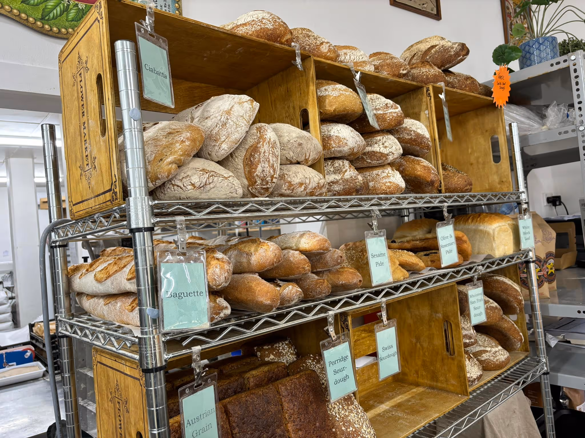 Their handcrafted sourdough breads are a particular highlight, available in several varieties including their signature Original Sourdough and the premium Organic Spelt & Sprouted Rye Sourdough. Each loaf reflects their commitment to quality ingredients and proper fermentation methods.