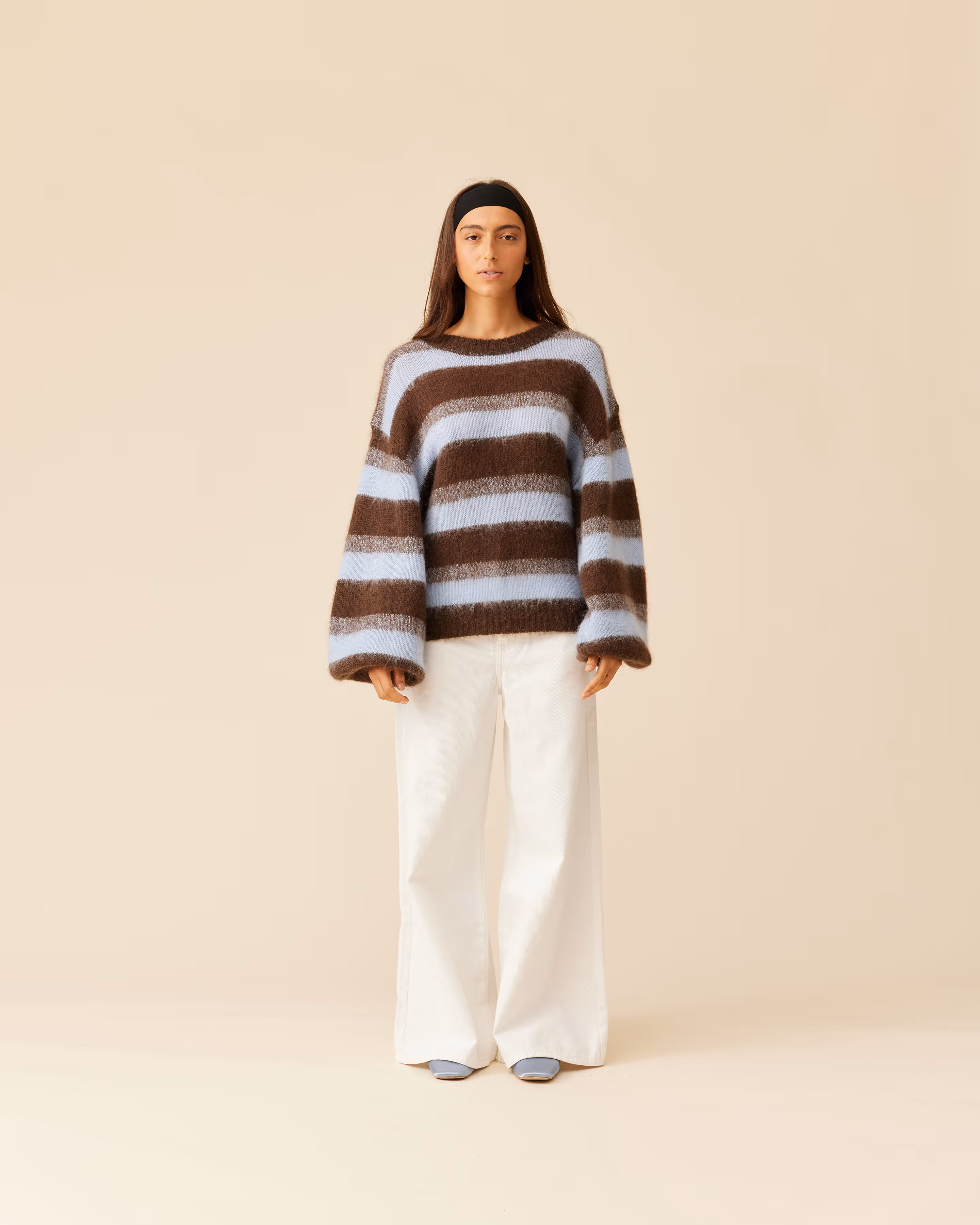 We play with the in-between, where sharp tailoring meets rich, warm tones. Suiting makes the first move with our Coco Suit + Sasha Wrap Pant, cinched + considered in all the right places. A new season calls for a new take on our trench of the season; Annie debuts in a deep plum shade that feels like winter’s true answer to colour. Meanwhile, Knit Shop takes centre stage once again, reinforcing our love of stripes in a burgundy, blue combo imagined across favourites, Emma, Marla + Matilda. Even Rubear returns for winter, trading sunshine for soft knits in a Sweater made for the chillier months ahead.
