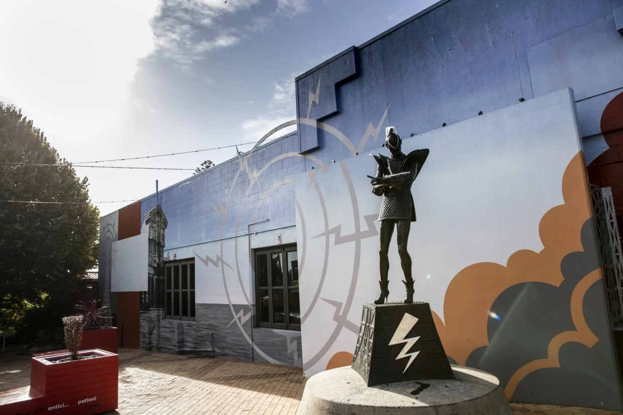 Actually, Riff Raff is already back. He’s just all wrapped up and nonchalantly tucked away in a corner of the park outside the new Waikato Regional Theatre.