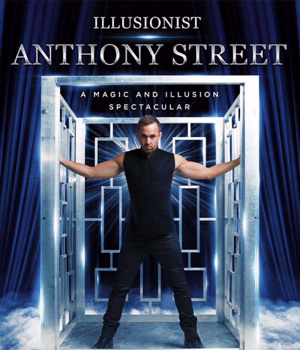 Step into a world of wonder with Illusionist Anthony Street, in a thrilling magic show crafted to captivate audiences of all ages! Anthony, renowned as the creator and star of the world-famous Celtic Illusion, brings his unique blend of breathtaking illusions, mind-bending magic, and boundless charisma to the stage. Prepare to be amazed as he conjures impossible feats before your eyes, blending traditional magic with modern spectacle, creating an experience that’s both heart-pounding and heartwarming.